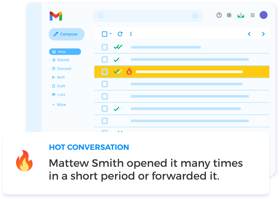 Follow-up reminders ensure you never miss a critical email response. With Mailsuite, you’ll get alerts directly in Gmail when your emails go unopened or unanswered, so you can act quickly and keep deals moving forward -