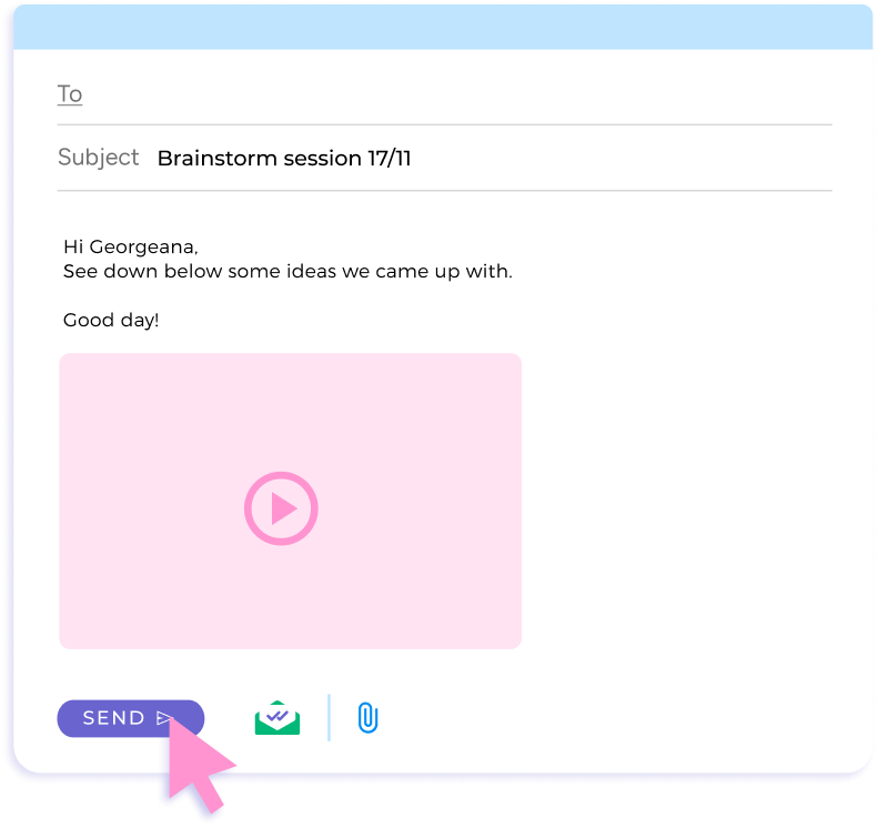 Video emails stand out in crowded inboxes – people are more likely to open and watch a video than read a block of text. This makes your communication more engaging and your ideas easier to understand. By making your message clearer, you'll grab attention, simplify understanding, and improve client interaction.